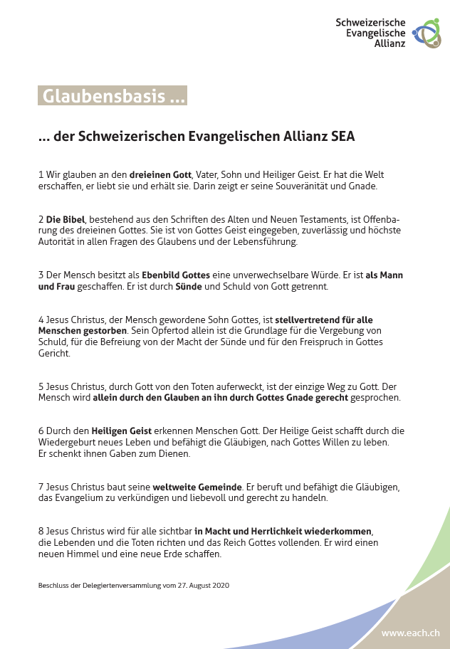Zu den Grundanliegen der EAO gehören das Fördern einer persönlichen Beziehung zum dreieinen Gott (Vater, Sohn und Heiliger Geist), das Gestalten des Glaubens im Alltag, das Gespräch über die Inhalte der Bibel und das Einladen interessierter Menschen zum Entdecken und Vertiefen des Glaubens.